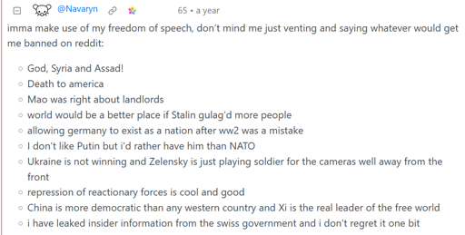 arrow-up11arrow-down1imageLemmy.ml: "Don't talk about how our Russian propaganda is Russian propaganda or that's a Rule 1 censoring!"plus-squarelemmy.worldcm0002@lemmy.worldEnglish · edit-211 months agomessage-square0fedilink