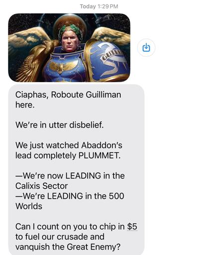 UsedLinuxDealer@lemmy.world · 1 month agoThese fundraising texts are getting ridiculous...lemmy.worldimagemessage-square0fedilinkarrow-up11arrow-down10