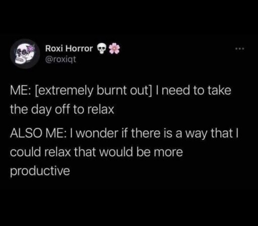 It’s me, “yeah today i can totally relax” 10 minutes later “why i am still programming?”