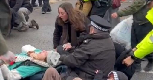A police officer at a protest for the Palestine Action hunger strikers strangled a doctor until she passed out by dragging her by the back of her hoodie, the doctor has told Novara Media.
