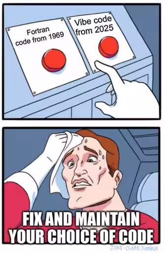 minus-squareneidu3@sh.itjust.workslinkfedilinkEnglisharrow-up1·16 days agoFortran. At least it was comprehensible to a human brain once upon a time. And probably efficiently written.