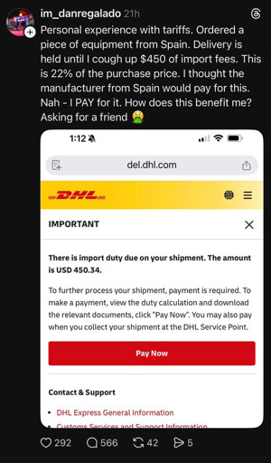 Wispy2891@lemmy.world to Leopards Ate My Face@lemmy.worldEnglish · 17 days agoOP is shocked that an import tax is not paid by the exporterlemmy.worldimagemessage-square195fedilinkarrow-up11.03Karrow-down19file-text