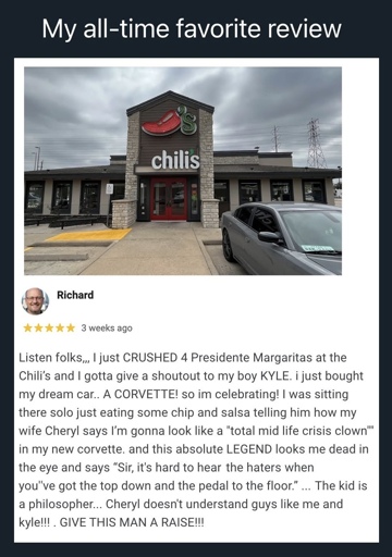 I can’t believe someone would see this and go “Hahaha, man, Chili’s DOES sound good” and then go to Chili’s.