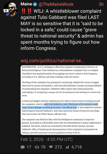 Its just such a strange way to phrase this. All sorts of classified and confidential information gets locked in safes, usually because nobody is working on it, not because of how secret it is. It sounds like this piece of information is embarrassing to Trump in some way, which is generally not surprising and would explain why nobody is working on it. Claiming “grave damage to national security” is just a generic way to say they dont want to release it.