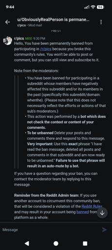 the large subs like pics ban much more easily even more than political ones. one of my first bans in a account last decade was r/pics. this was before the trump madness took over reddit.