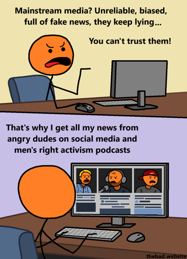 That’s why I get all my news from angry dudes on social media and men’s right activism podcasts