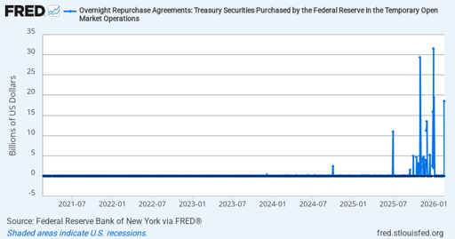 Graph and download economic data for Overnight Repurchase Agreements: Treasury Securities Purchased by the Federal Reserve in the Temporary Open Market Operations (RPONTSYD) from 2000-01-03 to 2026-02-19 about repurchase agreements, purchase, overnight, trade, Treasury, securities, and USA.