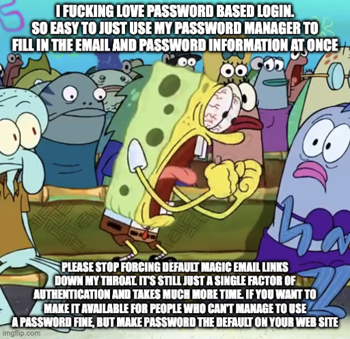 arrow-up11.31Karrow-down1imageI love password based loginlemmy.worldbdjegifjdvw@lemmy.world to Programmer Humor@programming.dev · 3 days agomessage-square197fedilink