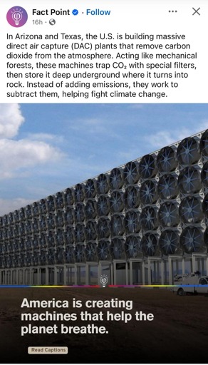 Direct air capture is a scam. It requires energy that comes from somewhere else. Capturing CO2 requires energy, it’s basic physics/chemistry.