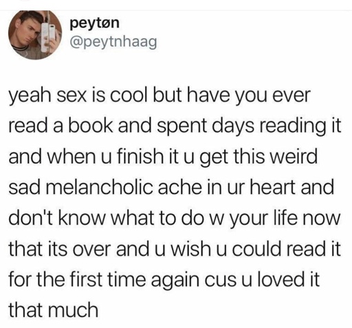 When it was done I had forgotten what to do with my time, I wound up re-reading it again but slower at a few chapters a day rather than turning myself into a gremlin for maximal reading efficiency.