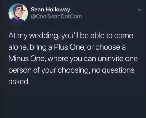 If “come alone” is one of the options, does that imply that in order to uninvite someone you have to yourself avoid attending?