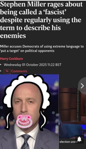 “But he does it too” is losing messaging. You are basically doing his marketing for him. “Stephen Miller is a weird little tantrum prone fascist loser” is much better.