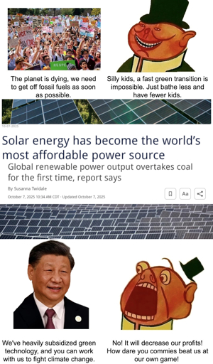 culprit@lemmy.ml to Memes@lemmy.ml · edit-26 days agoburning petro dollars vs renewable commoditiesimagemessage-square39fedilinkarrow-up1376arrow-down128file-text