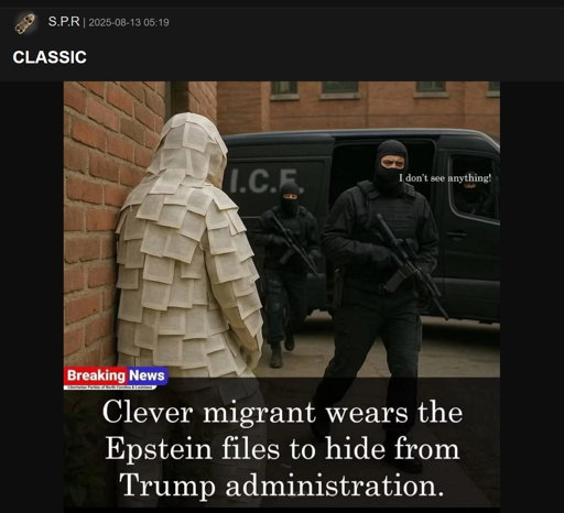 But they’re not releasing the Epstein files. Surely cosplaying as them only going to cause trouble