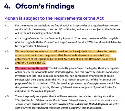 cm0002@lemdro.id to Technology@lemmy.zipEnglish · 7 days agoThe Ofcom Tea Party: 4Chan Lawyer publishes Ofcom correspondence, British regulator claims “sovereign immunity” to defend itself – and sovereign powers to regulate foreign companiesalecmuffett.comexternal-linkmessage-square0fedilinkarrow-up11arrow-down10cross-posted to: technology@lemmy.world