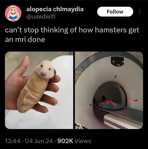 minus-squarebalderdash@lemmy.ziplinkfedilinkarrow-up12·2 days agoDamn, this hamster is getting better healthcare than me