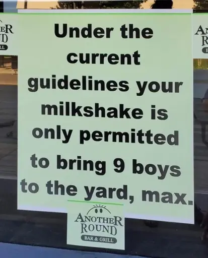 - Eh? Am I missing something? - In addition to that reference, I bet this is a pandemic era joke about public health guidance - All boys must stand two meters apart from each other at all time while in the yard.