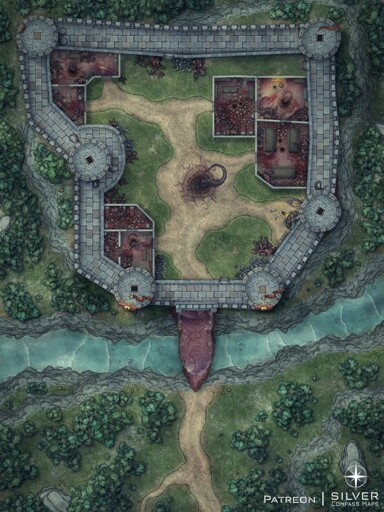 This map pack features Transformed, Summer, Winter, Fog, Haunted, and Night variants. Foundry VTT modules with pre-built walls and lighting are available to Gamemaster patrons.