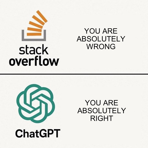 cm0002@infosec.pub to Programmer Humor@programming.dev · 2 days agoStackOverflow vs ChatGPTinfosec.pubimagemessage-square31fedilinkarrow-up1745arrow-down17