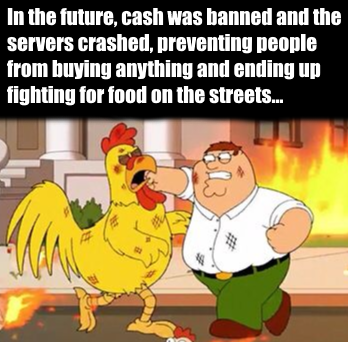 This sort of happened when AWS crashed. I called in my order for my favorite Greek salad and they said they only took cash because payments were down. I fortunately had cash. While waiting for pickup, people came in and couldn’t order because they didn’t have cash.