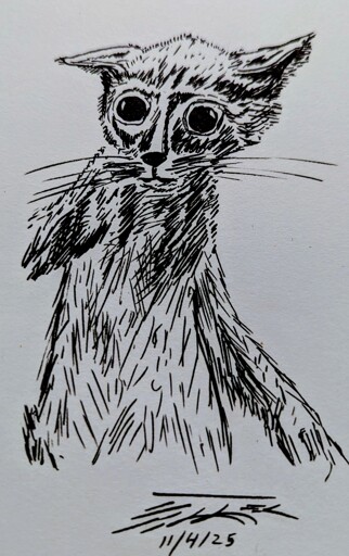 I have upvoted this very anxious cat, but I request you start working on another drawing of the same cat safe and contented. I’ll be over here with my arms folded and foot tapping…