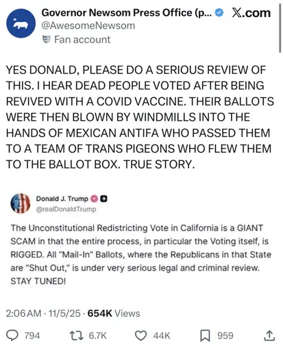 It’s just a rando account who recreates the manner in which Newsom’s office tweets.