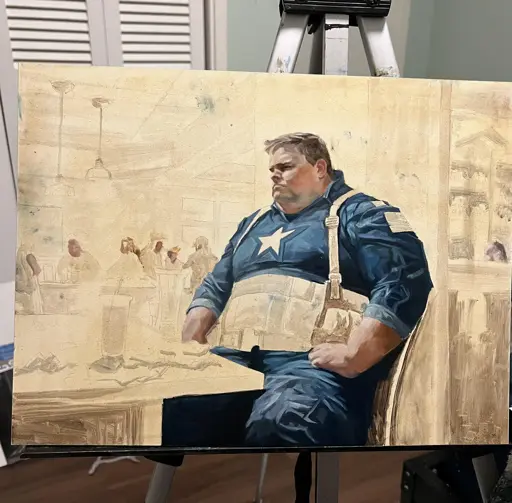 Bit strange to post some work in progress of this. Here is the finished one: https://www.reddit.com/r/painting/comments/13gos12/the_captain_me_2023_oil_on_panel/ (yeah sorry, reddit link…)