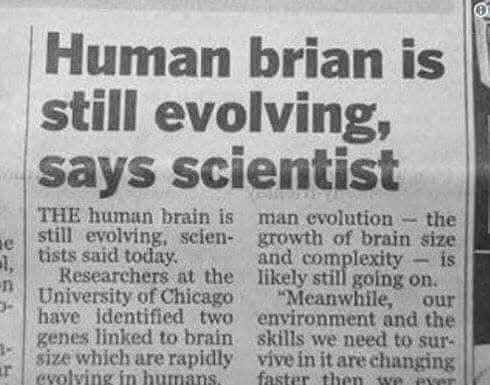 (hope i didn’t made a typo here 😯)Evolution is a change in allele frequency in a population over generations. Of course our brains are still evolving.