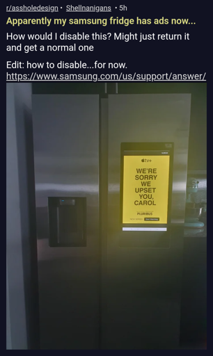 arrow-up1825arrow-down1imageRefrigerator ads are finally here!discuss.onlineByteOnBikes@discuss.online to A Boring Dystopia@lemmy.world · 19 days agomessage-square319fedilink