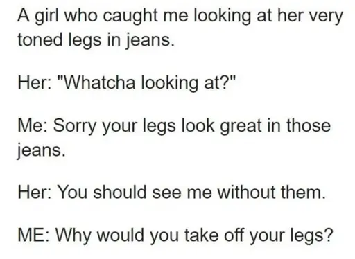minus-squareReCursing@feddit.uklinkfedilinkEnglisharrow-up56·1 day agoMy partner has a prosthetic leg, so “to go to bed” would be a valid response