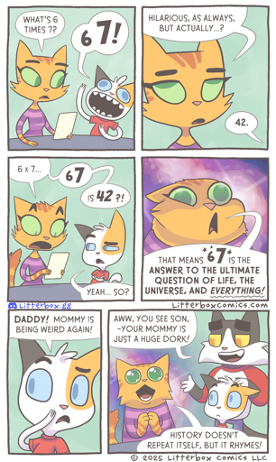 cat mum (making faces): that means 6 7 is the answer to the ultimate question of life, the universe and everything!