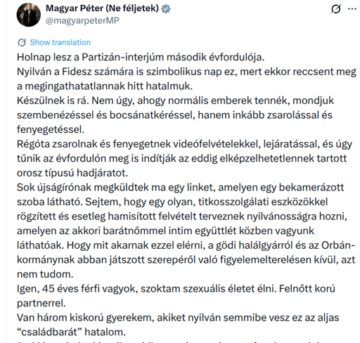 arrow-up119arrow-down1imageThe lead opposition candidate in Hungary's upcoming election, Peter Magyar, says a sextape of him is going to be released by the governmentplus-squarelemmy.worldOndore@lemmy.world to Europe@feddit.orgEnglish · edit-222 hours agomessage-square5fedilink
