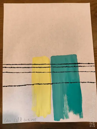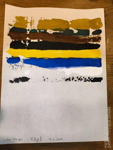 I using something like this https://www.hobbylobby.com/art-supplies/painting-supplies/watercolor-painting/watercolor-paint---24-piece-set/p/81073667 They’re in tubes and allow using it thicker than trays of watercolor paints. I like horizontal lines, like you would see in a far off sunset, with a big sky above. I started scraping the paint across the paper, and found using an old spackling blade seemed to get the paint spread how I envisioned it. Each composition is something I think about for a while, and figure out the colors as I go. un. Is one I pictured with a white background and the gloppy bottom in thicker white, the middle of the page two colors are, I feel, adding tension, like it is on its side. I didn’t notice that until I was done with it, though. Colors 3 I had the idea of opposites coming at each other, and when I was making it, I staggered the opposition. Color Strips I did with a single pass of all the colors at once with a wide spackling blade. I’m mostly seeing how the stripes of different colors are arranged from some idea that pops into my head. Not a lot of rhyme or reason, but I enjoy making these and looking at them later.