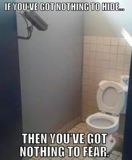 owiseedoubleyou@lemmy.ml to Memes@lemmy.ml · 2 years agoYou truly have nothing to hide, don't youimagemessage-square1fedilinkarrow-up10arrow-down10